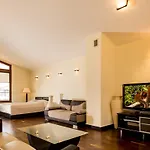 Кроме зоны отдыха, к услугам гостей система климат-контроля, а также телевидение, телевизор с плоским экраном и спутниковыми каналами. Апартаменты с паркетным полом включают в себя диван. Наряду с феном и полотенцами, в собственной ванной комнате есть ванна, душевая кабина и отдельный туалет.
